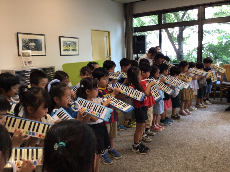 アイハート須磨へ行き、歌やピアニカを披露しました。その後は、おじいちゃん、おばあちゃんと一緒に紅白玉送りゲームをして遊びました。