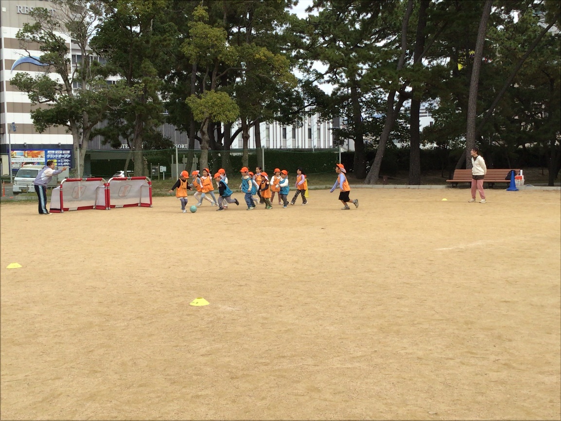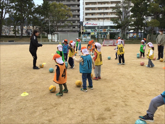 INAC神戸のコーチの方が来てくださり、サッカーのドリブルやシュートの仕方を教えてもらいました。最後にはみんなで試合を行い、楽しい1日となりました。