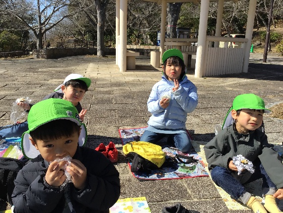 「山登り」(5歳児:かもめ組 4歳児:くじら組) ニュース2026年2月17日 旗振山へ山登りに行きました。山の自然を楽しみながら最後まで山を登りきりました。 頑張って登った後のおにぎりはとても美味しかったです。